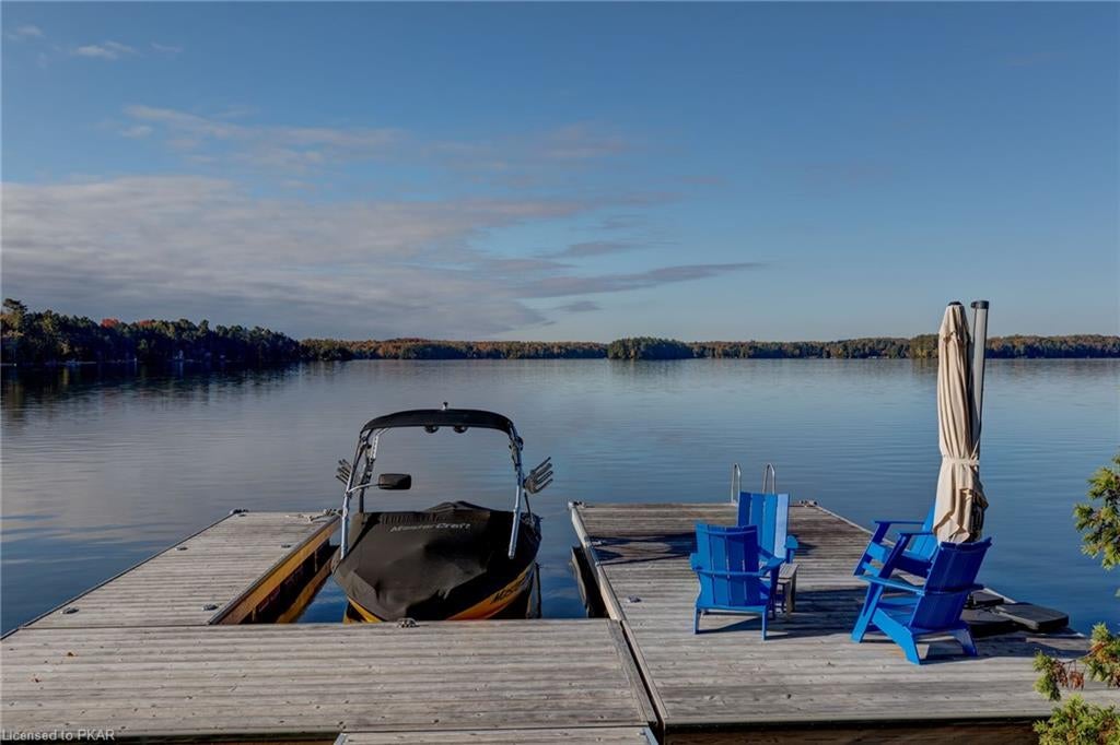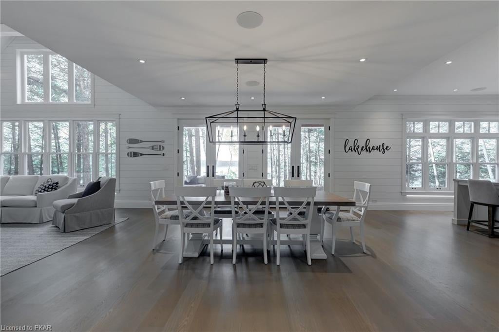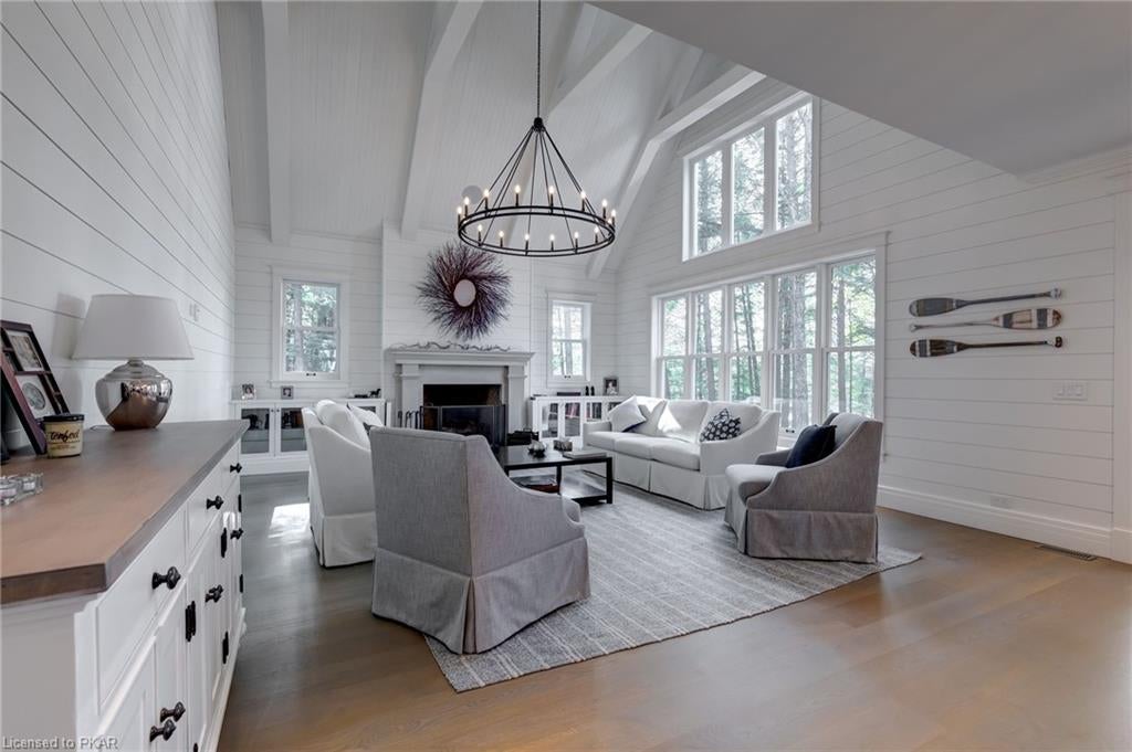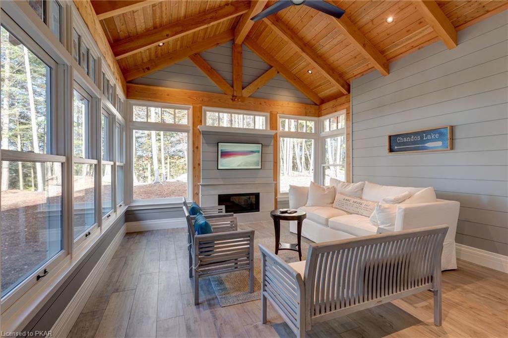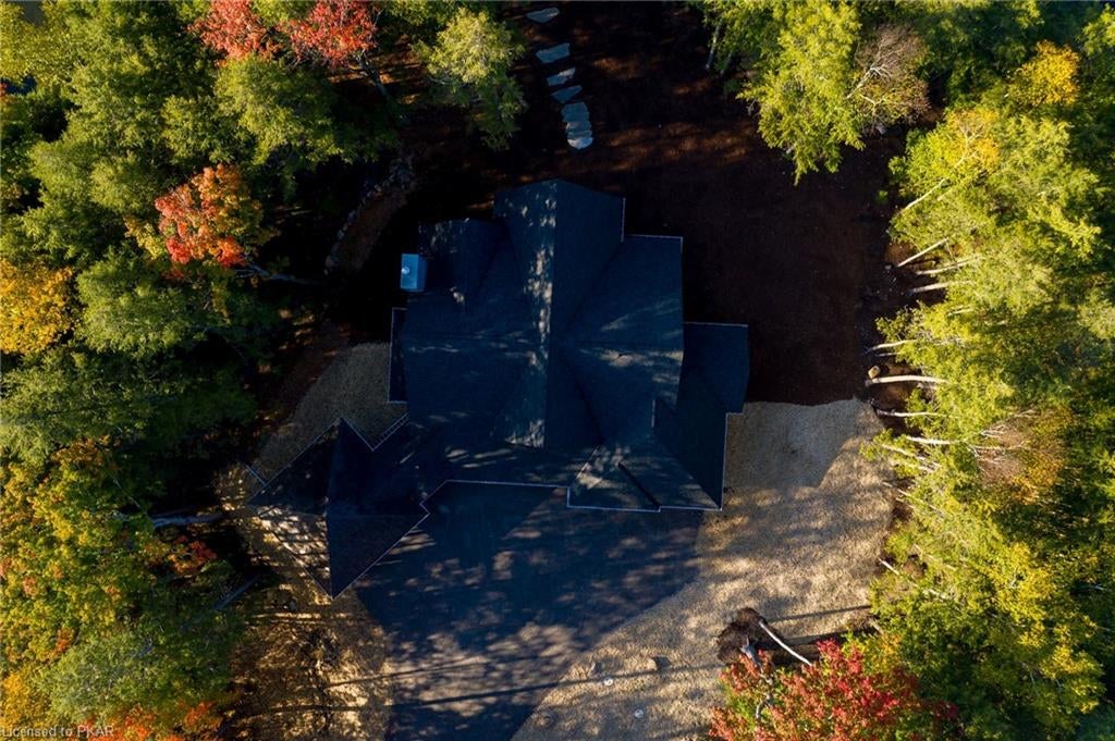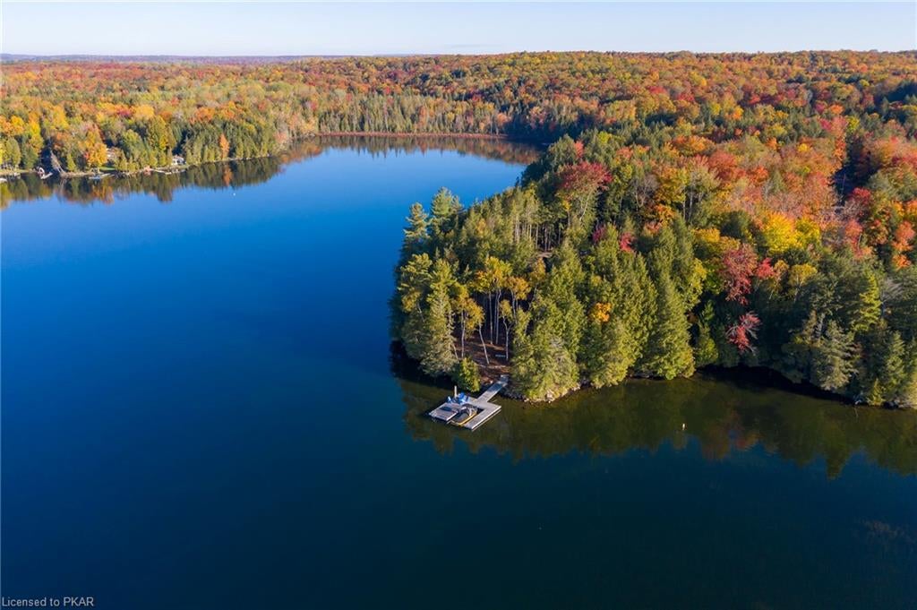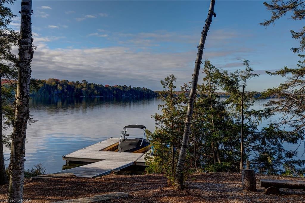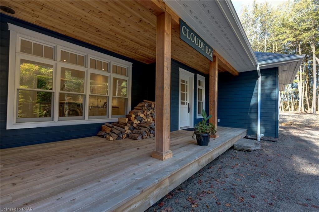 Nestled in the woods you will find a spectacular new 4 season cottage/ home. A gently sloping lot offers extreme privacy with 8.6 acres and 830 feet of excellent water frontage with western exposure. This new build boasts open concept living with a vaulted ceiling and stone fireplace. The spacious custom designed kitchen has all new top of the line Subzero and Wolf appliances, quartz counter tops, ceramic back splash, and under cabinet low voltage lighting. A spacious dining area and access to a beautiful three season room with gas fireplace complete the living space. Also on the main floor is the laundry area complete with a dog washing station, interior access to the large carport, three large bedrooms and 2.5 bathrooms. The second floor offers a large primary suite with a large bedroom, walk in closet, lakeside deck, and a beautiful primary en suite with a separate toilet closet.