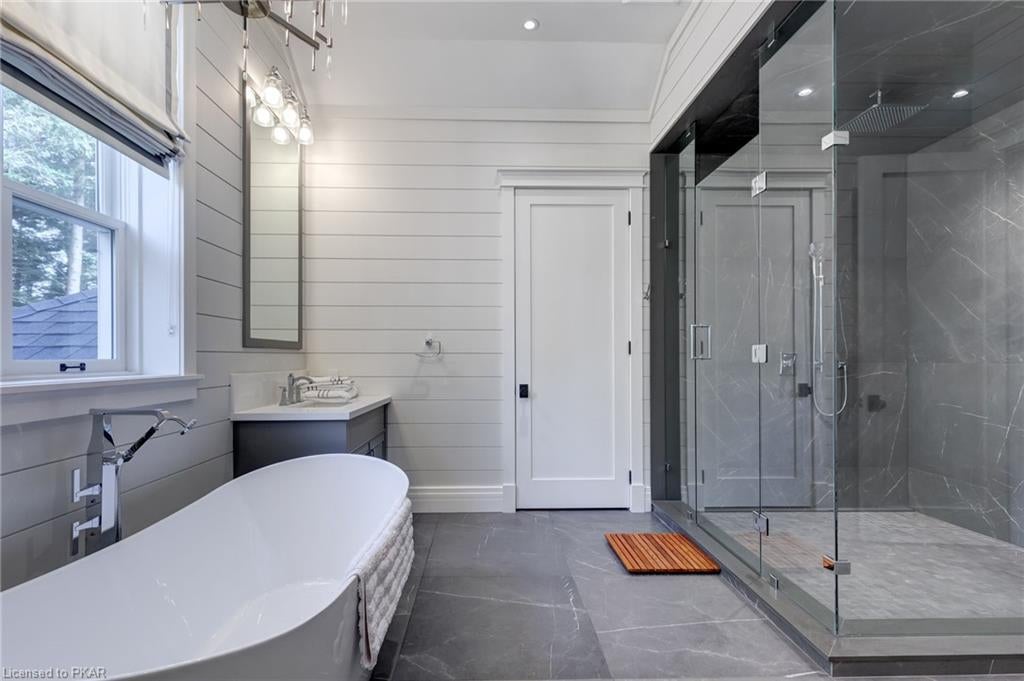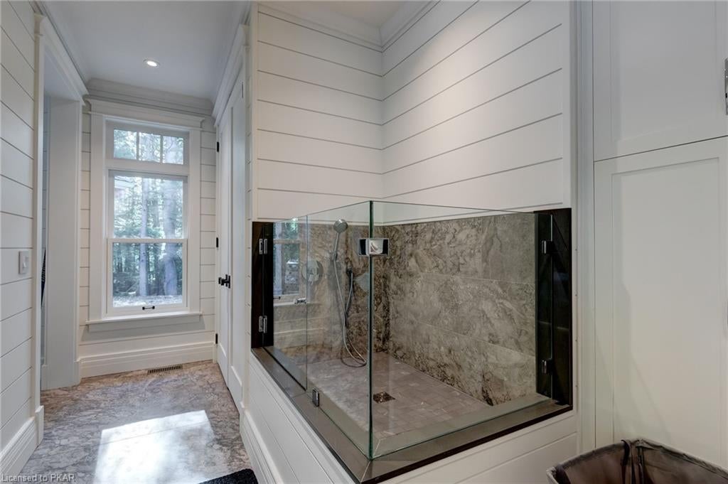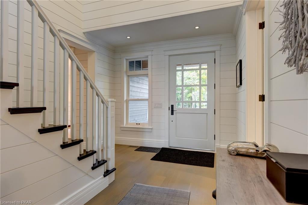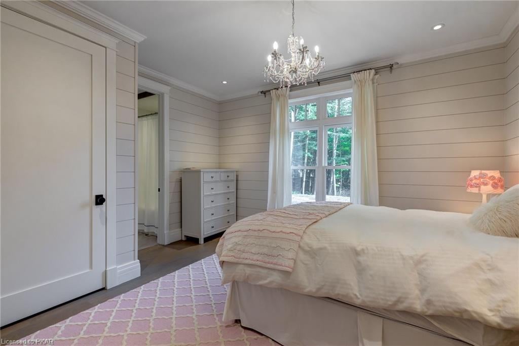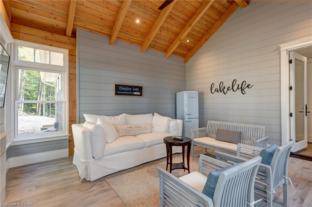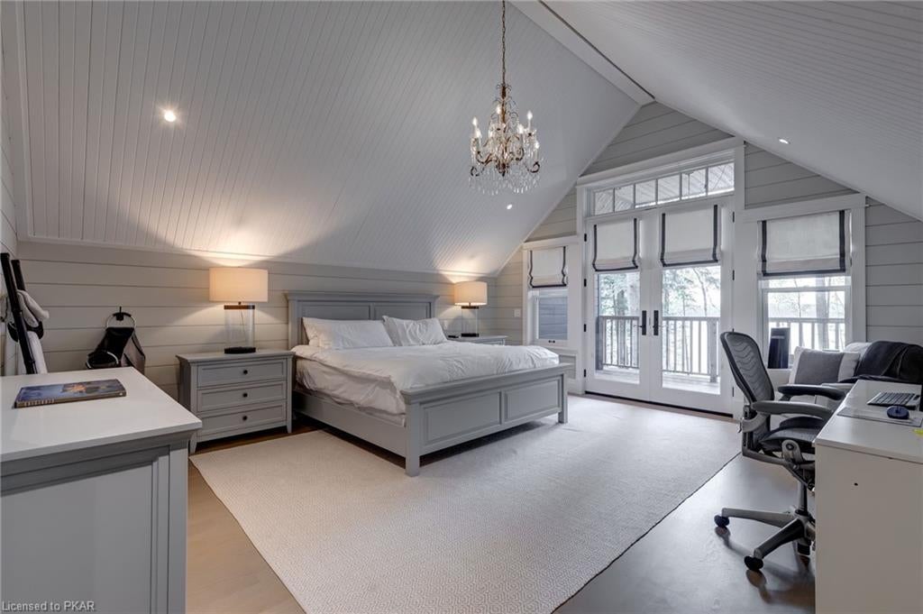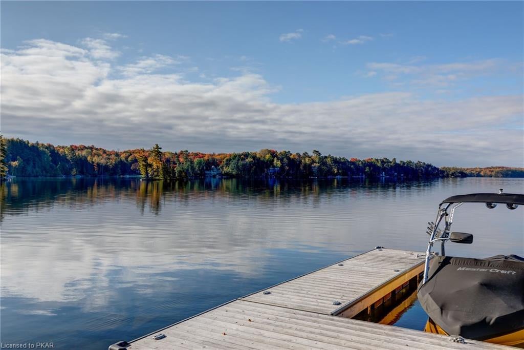 Nestled in the woods you will find a spectacular new 4 season cottage/ home. A gently sloping lot offers extreme privacy with 8.6 acres and 830 feet of excellent water frontage with western exposure. This new build boasts open concept living with a vaulted ceiling and stone fireplace. The spacious custom designed kitchen has all new top of the line Subzero and Wolf appliances, quartz counter tops, ceramic back splash, and under cabinet low voltage lighting. A spacious dining area and access to a beautiful three season room with gas fireplace complete the living space. Also on the main floor is the laundry area complete with a dog washing station, interior access to the large carport, three large bedrooms and 2.5 bathrooms. The second floor offers a large primary suite with a large bedroom, walk in closet, lakeside deck, and a beautiful primary en suite with a separate toilet closet.