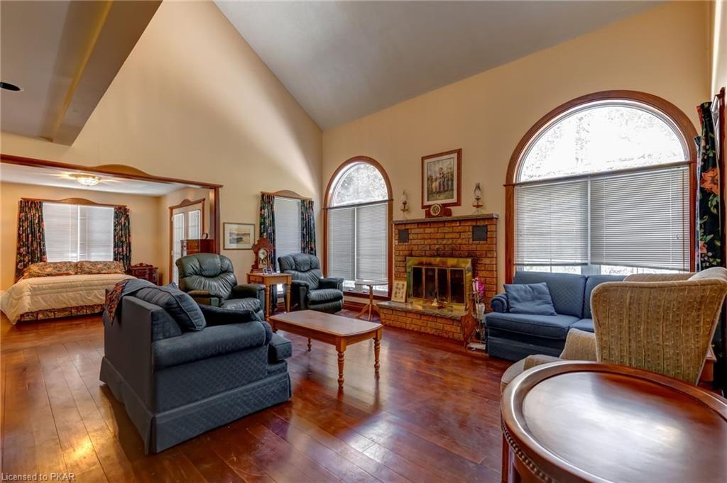 The property offers a four season, three bedroom, 3.5 bathroom, large home with two sun rooms, custom oak doors and trim, vaulted ceilings and solid cherry wood flooring.