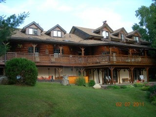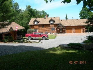 Premium Property. Luxury Custom Built Log Home/Retreat in the upscale area of Chandos Estates. Landscaped, with two large ponds, Armour stone retaining wall with 238 ft of excellent waterfront. Attached oversized double car garage with carport and a detached workshop with 2 carports. 80 ft covered porch with skylights. Open concept, custom kitchen with centre island & granite counters. Cork & Engineered Hardwood flooring. Fieldstone fireplace with Gas insert. Finished Lower level with 3 walk-outs to Hot Tub. Sauna, Parquet Flooring, Back-up Generator and much more!! Excellent high-speed internet. Includes partial interest in 59 acre nearby woodlot and partial interest in two back lots. See REALTOR website for more information