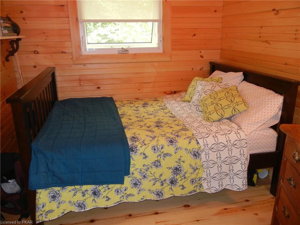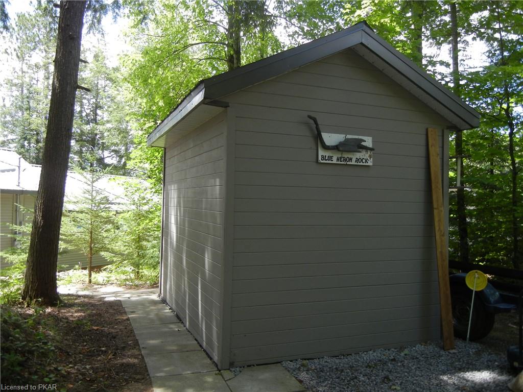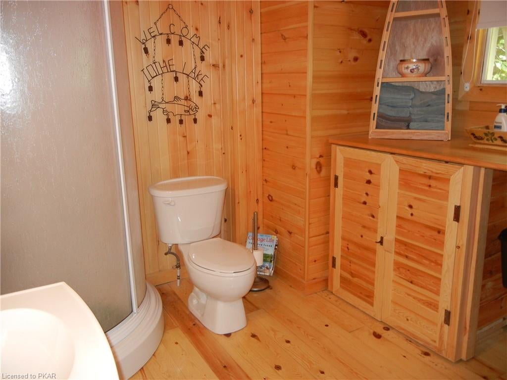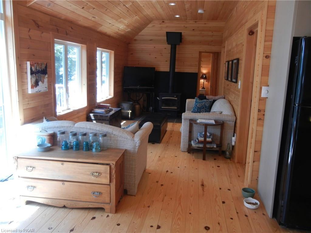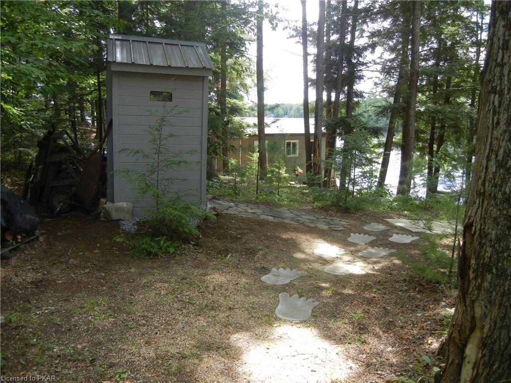Nestled in the woods you'll find a spectacular cottage. A nicely sloping lot offers beautiful water frontage with southwestern exposure. This fully updated and renovated Four seasons cottage boasts an open-concept great room with a spacious custom design kitchen that has a large island and granite counter tops. There are three main floor bedrooms and a large 3-piece bathroom with main floor laundry facilities. In addition, there are three excellent outbuildings one of which is a Lakeside boat house with pine floors. The property offers exceptional privacy, with professional landscaping, a dock and beautiful calming lake views from both inside and outside of the cottage. All of this abutting crown land on beautiful Jack Lake only minutes from the full service Village of Apsley.