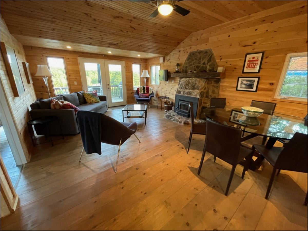 Tranquil Lakeside Cottage Retreat in the Kawarthas - End Lot Surrounded by Crown Land - Perched above a quiet corner of the lake in the heart of the Kawartha region, this charming lakeside retreat captures the essence of classic cottage country living. Set on a full acre of wooded land at the end of the road and bordered by untouched crown land, the property offers rare privacy, space to explore, and panoramic views of the surrounding forest and iconic Canadian Shield. With a southeast-facing orientation, the cottage welcomes warm sunrises and casts golden light across the treetops at sunset creating a magical backdrop for every meal on the deck. A gentle breeze moves through the trees, adding to the tranquility and helping keep the bugs at bay throughout the warmer months. The traditional two-bedroom cottage is warm and welcoming, featuring a wood-burning fireplace, a galley-style kitchen, and a three-piece bathroom. Water is drawn from the lake, filtered and sterilized for safe drinking, and the property includes a dependable septic system. A large bunkie with its own ensuite provides comfortable accommodation for guests or extended family, while a separate workshop and storage shed make room for tools, projects, or outdoor gear. Stairs lead down to the lakes edge, where a private floating dock awaits ideal for swimming, boating, or simply enjoying the peaceful sounds of nature. Set within a vibrant and friendly lake community, yet surrounded by nature on all sides, this property offers the perfect balance of connection and seclusion. This is your chance to own a truly special lakeside escape on one of the most picturesque and private lots on the edge of the Kawarthas.