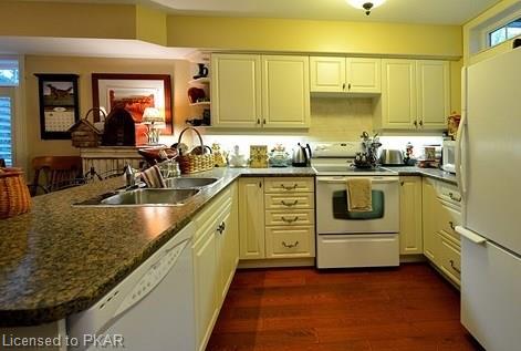 A beautifully decorated and equipped Freehold Condominium End Unit with a finished basement at The Landing on Anstruther Lake. Just put the key in the lock and start to enjoy your worry free recreational property. Condo also includes a storage unit for additional belongings, a boat slip and 2 parking spots.
