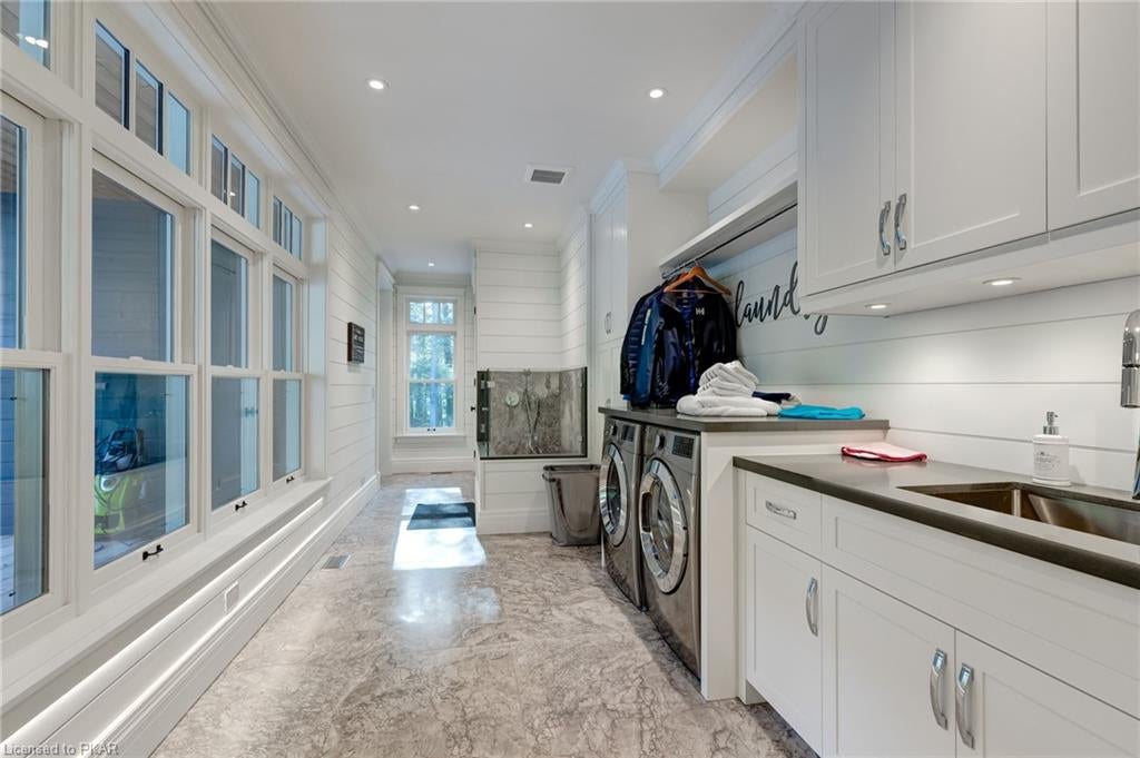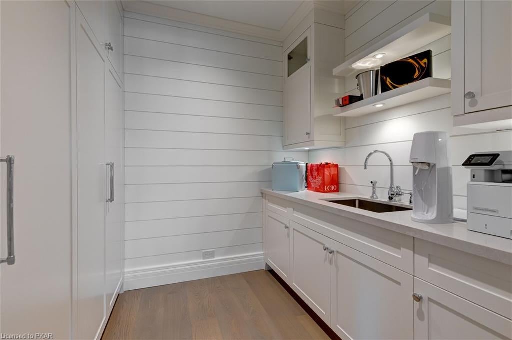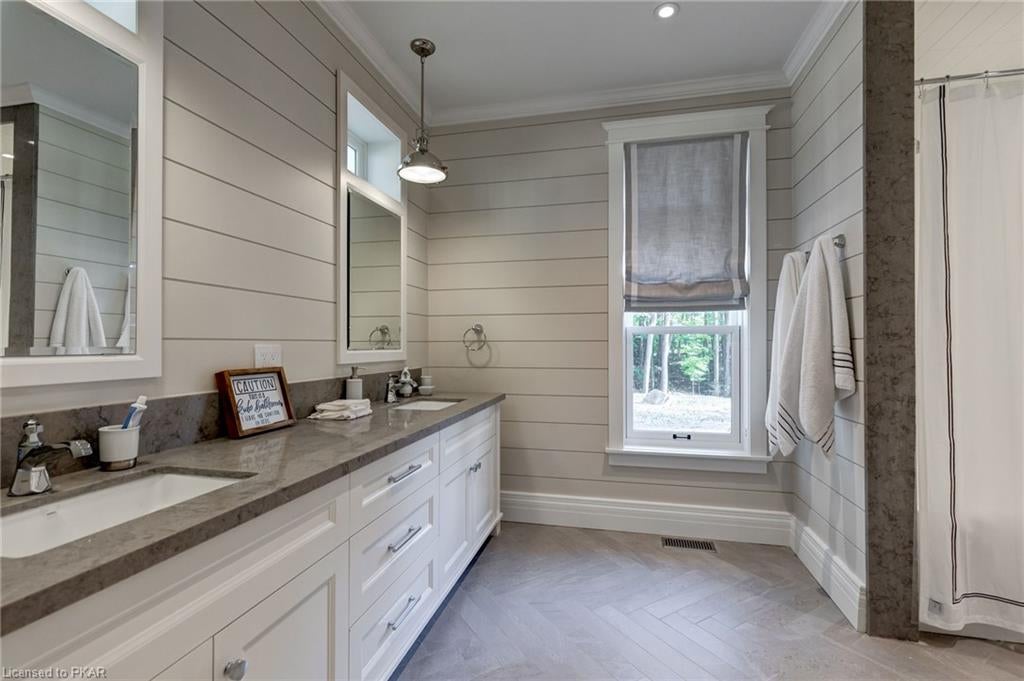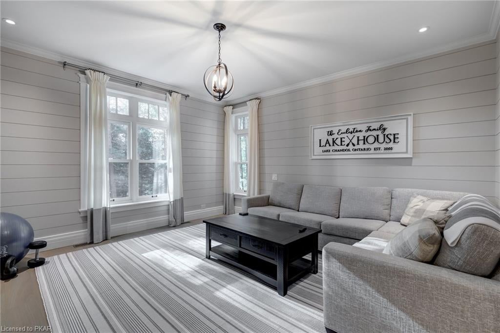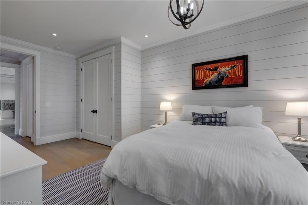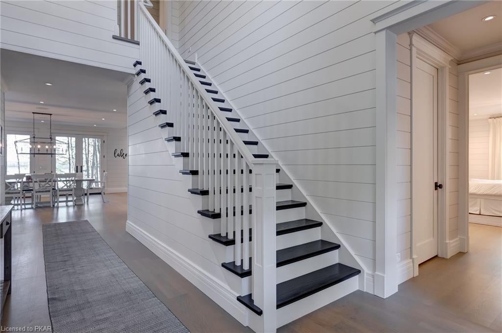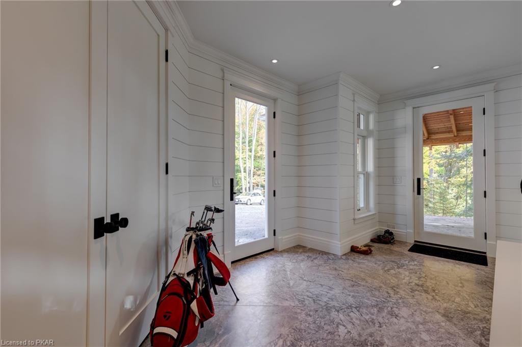 Nestled in the woods you will find a spectacular new 4 season cottage/ home. A gently sloping lot offers extreme privacy with 8.6 acres and 830 feet of excellent water frontage with western exposure. This new build boasts open concept living with a vaulted ceiling and stone fireplace. The spacious custom designed kitchen has all new top of the line Subzero and Wolf appliances, quartz counter tops, ceramic back splash, and under cabinet low voltage lighting. A spacious dining area and access to a beautiful three season room with gas fireplace complete the living space. Also on the main floor is the laundry area complete with a dog washing station, interior access to the large carport, three large bedrooms and 2.5 bathrooms. The second floor offers a large primary suite with a large bedroom, walk in closet, lakeside deck, and a beautiful primary en suite with a separate toilet closet.