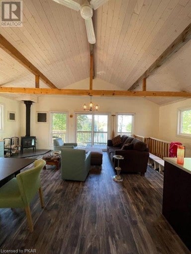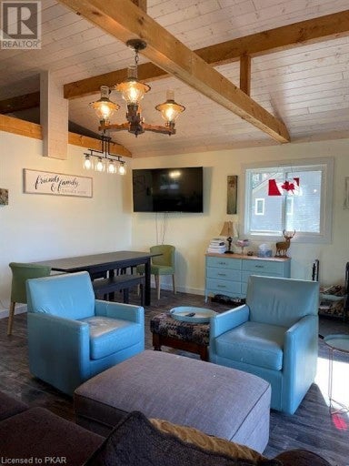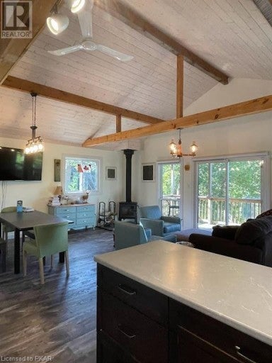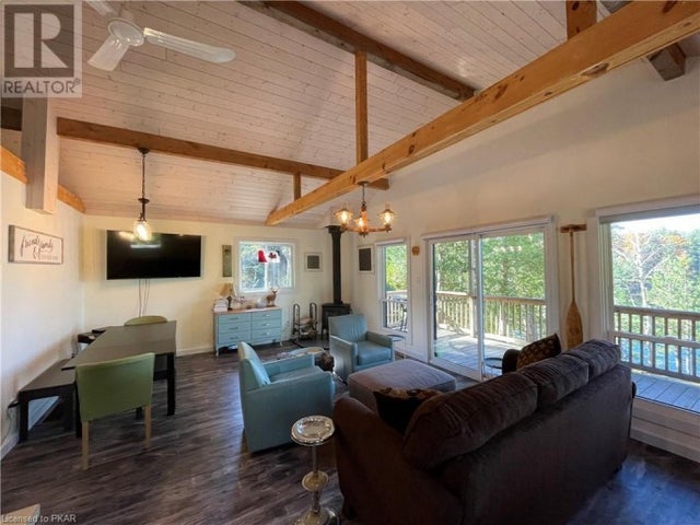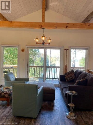 A beautiful west facing, fully renovated and updated four season Chandos Lake 2 bedroom, one bathroom cottage. Enjoy gorgeous sunsets and wide open island views from the cottage and deck. There is also a new two car garage with hydro to store all of the toys. The lower level has a walkout on the lake side and could easily to finished to provide additional living space if needed. Excellent steps to the lake lead to a large new dock and excellent clean deep waterfront. Call today to book your private showing of this great Chandos Lake property. (id:2471)