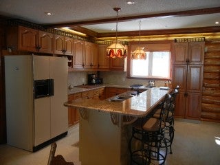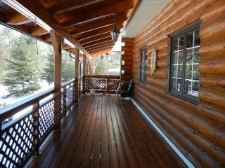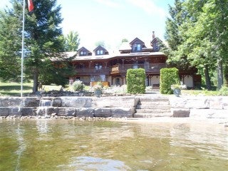 Premium Property. Luxury Custom Built Log Home/Retreat in the upscale area of Chandos Estates. Landscaped, with two large ponds, Armour stone retaining wall with 238 ft of excellent waterfront. Attached oversized double car garage with carport and a detached workshop with 2 carports. 80 ft covered porch with skylights. Open concept, custom kitchen with centre island & granite counters. Cork & Engineered Hardwood flooring. Fieldstone fireplace with Gas insert. Finished Lower level with 3 walk-outs to Hot Tub. Sauna, Parquet Flooring, Back-up Generator and much more!! Excellent high-speed internet. Includes partial interest in 59 acre nearby woodlot and partial interest in two back lots. See REALTOR website for more information