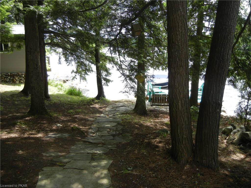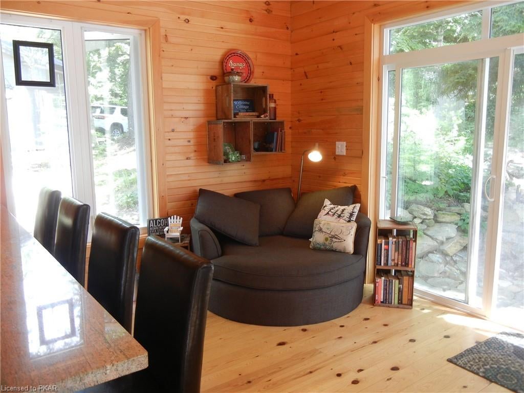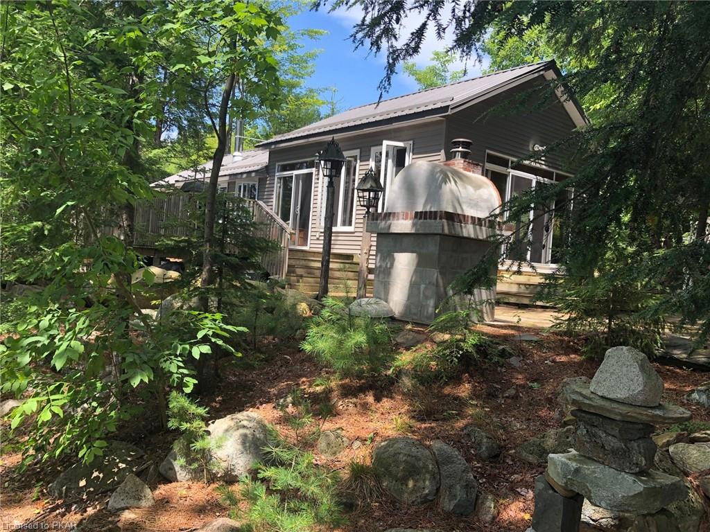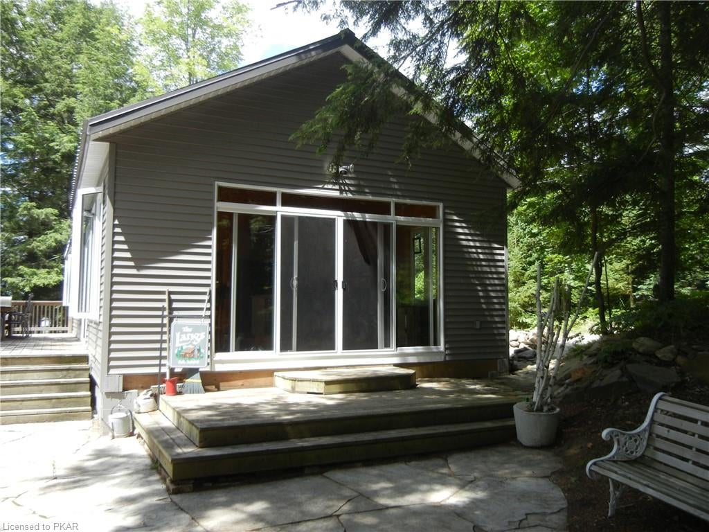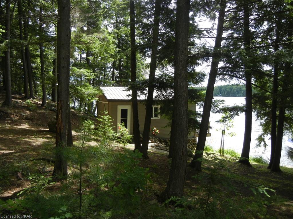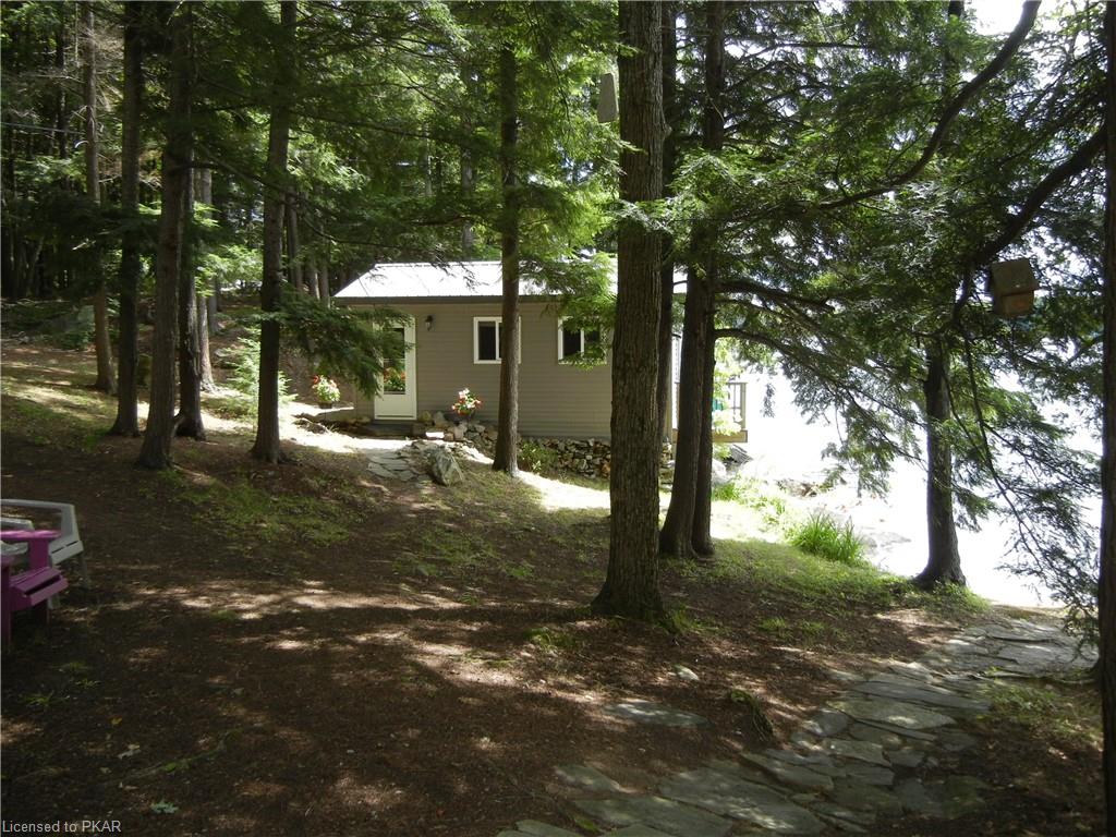 Nestled in the woods you'll find a spectacular cottage. A nicely sloping lot offers beautiful water frontage with southwestern exposure. This fully updated and renovated Four seasons cottage boasts an open-concept great room with a spacious custom design kitchen that has a large island and granite counter tops. There are three main floor bedrooms and a large 3-piece bathroom with main floor laundry facilities. In addition, there are three excellent outbuildings one of which is a Lakeside boat house with pine floors. The property offers exceptional privacy, with professional landscaping, a dock and beautiful calming lake views from both inside and outside of the cottage. All of this abutting crown land on beautiful Jack Lake only minutes from the full service Village of Apsley.