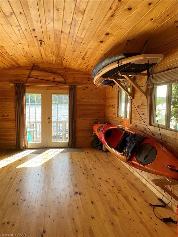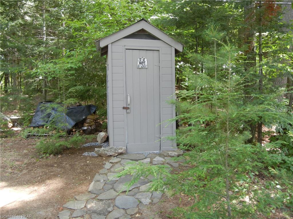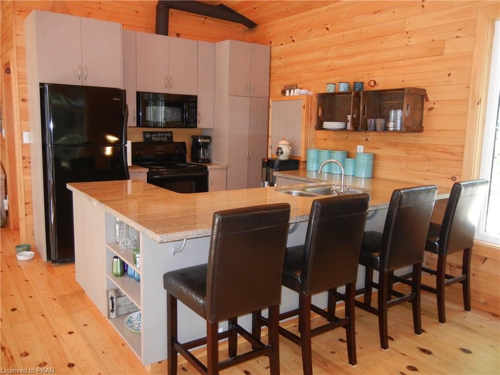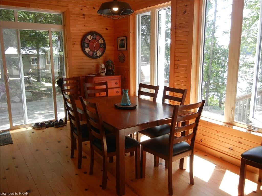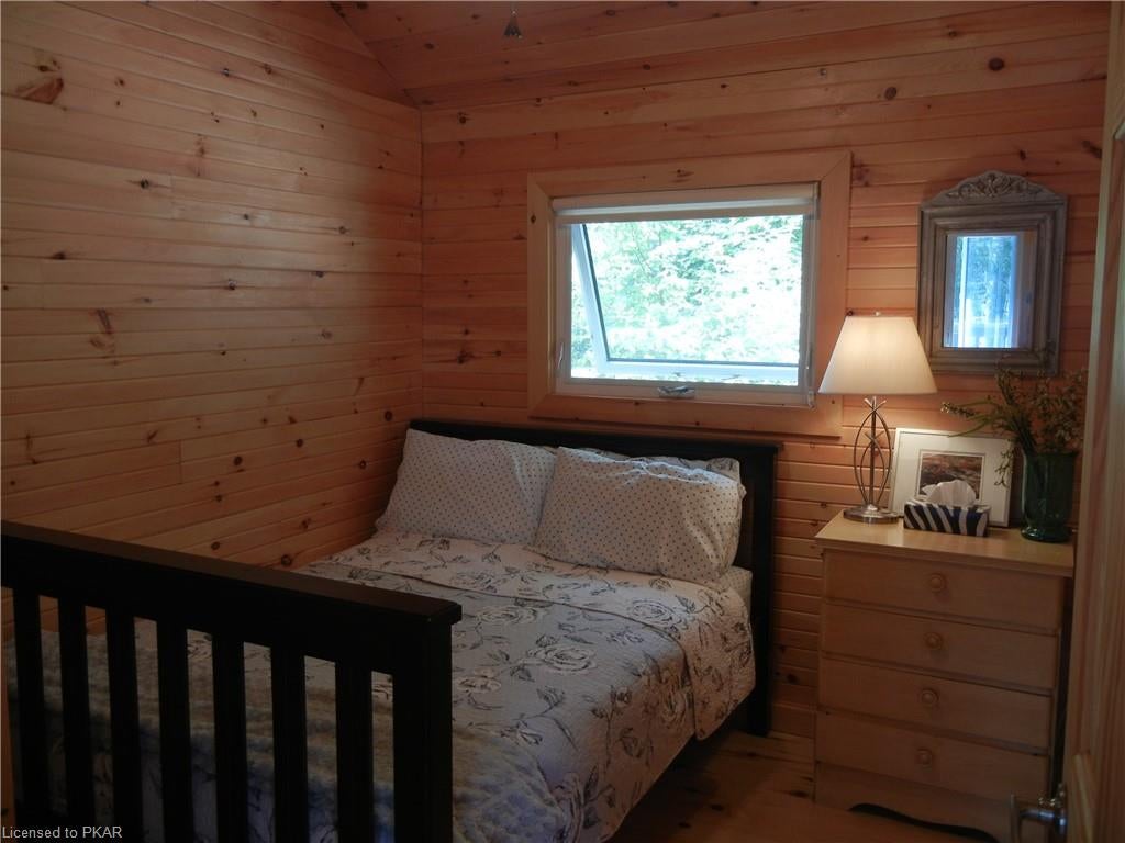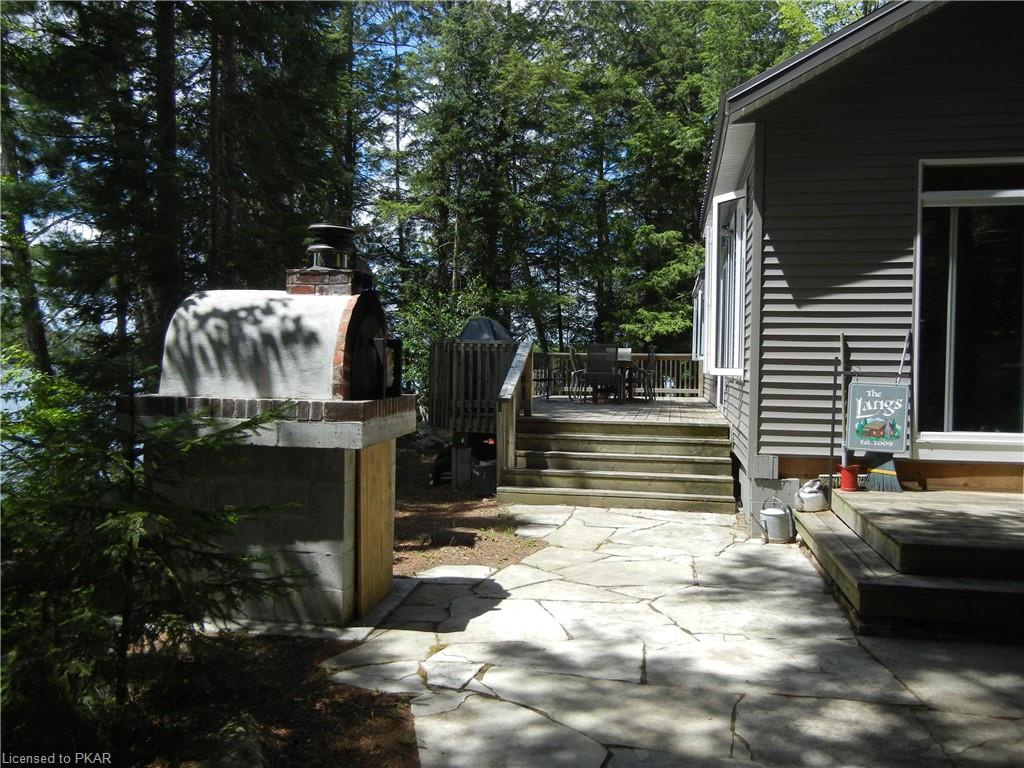 Nestled in the woods you'll find a spectacular cottage. A nicely sloping lot offers beautiful water frontage with southwestern exposure. This fully updated and renovated Four seasons cottage boasts an open-concept great room with a spacious custom design kitchen that has a large island and granite counter tops. There are three main floor bedrooms and a large 3-piece bathroom with main floor laundry facilities. In addition, there are three excellent outbuildings one of which is a Lakeside boat house with pine floors. The property offers exceptional privacy, with professional landscaping, a dock and beautiful calming lake views from both inside and outside of the cottage. All of this abutting crown land on beautiful Jack Lake only minutes from the full service Village of Apsley.