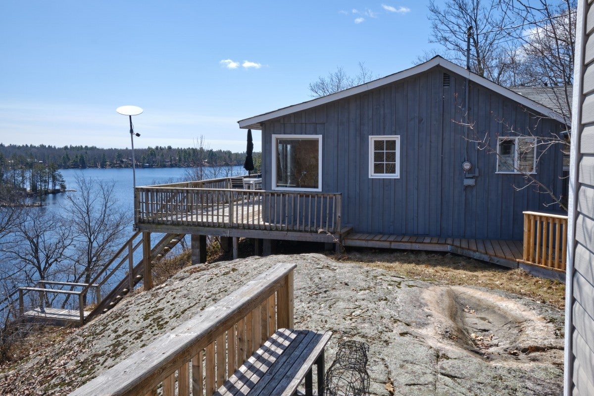 Tranquil Lakeside Cottage Retreat in the Kawarthas - End Lot Surrounded by Crown Land - Perched above a quiet corner of the lake in the heart of the Kawartha region, this charming lakeside retreat captures the essence of classic cottage country living. Set on a full acre of wooded land at the end of the road and bordered by untouched crown land, the property offers rare privacy, space to explore, and panoramic views of the surrounding forest and iconic Canadian Shield. With a southeast-facing orientation, the cottage welcomes warm sunrises and casts golden light across the treetops at sunset creating a magical backdrop for every meal on the deck. A gentle breeze moves through the trees, adding to the tranquility and helping keep the bugs at bay throughout the warmer months. The traditional two-bedroom cottage is warm and welcoming, featuring a wood-burning fireplace, a galley-style kitchen, and a three-piece bathroom. Water is drawn from the lake, filtered and sterilized for safe drinking, and the property includes a dependable septic system. A large bunkie with its own ensuite provides comfortable accommodation for guests or extended family, while a separate workshop and storage shed make room for tools, projects, or outdoor gear. Stairs lead down to the lakes edge, where a private floating dock awaits ideal for swimming, boating, or simply enjoying the peaceful sounds of nature. Set within a vibrant and friendly lake community, yet surrounded by nature on all sides, this property offers the perfect balance of connection and seclusion. This is your chance to own a truly special lakeside escape on one of the most picturesque and private lots on the edge of the Kawarthas.