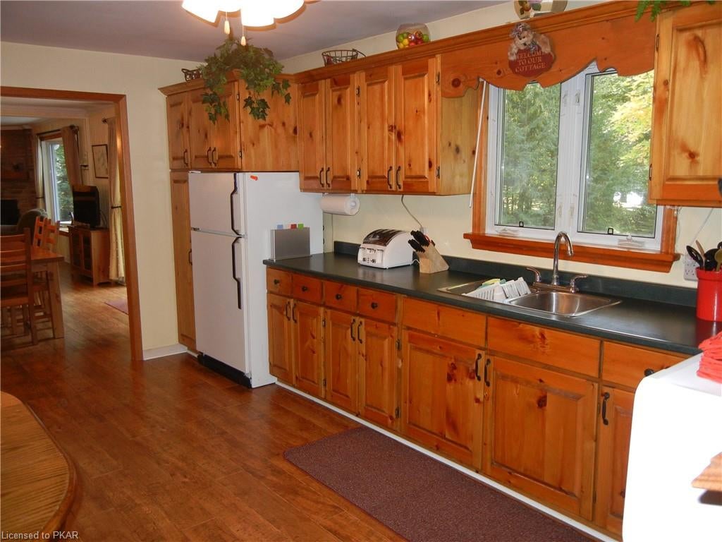 A very nice four bedroom, 1 bathroom four season cottage on a nice level lot with a gentle slope to Lasswade Lake offering beautiful island views.