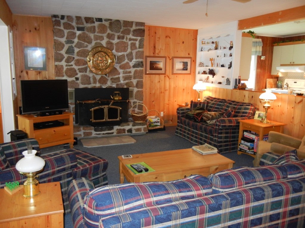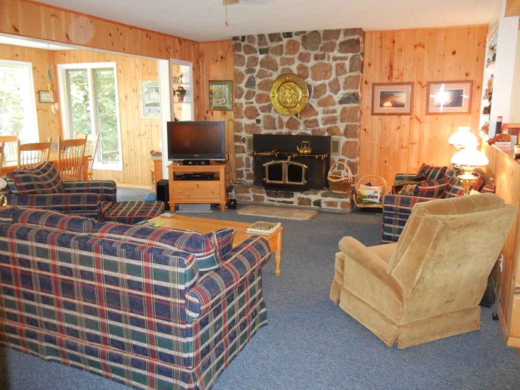 A delightful year round 3 bedroom, 1 bathroom cottage on a year round Township maintained road. Lovely gentle sloping grounds, ideal for the avid gardener and for children at play. Detached 2 car garage. Both cottage and garage have maintenance free steel roofs. Beautifully furnished, a truly relaxing and re-energizing cottage. Beautiful views from the cottage and at lakeside.
